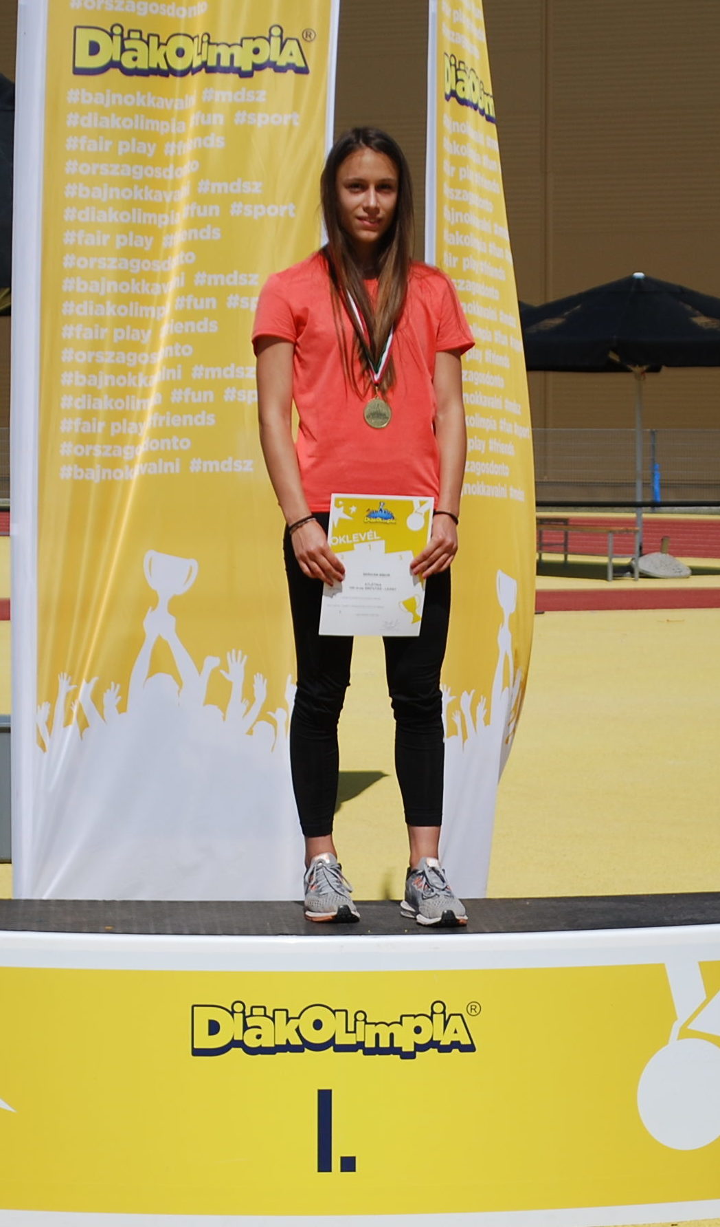 A bajnoki dobogós sorozatot Kárpáti Enikő kezdte meg, aki az V. korcsoport leány magasugrás versenyszámában 171 cm-es eredménnyel nyert diákolimpiai bajnoki címet.