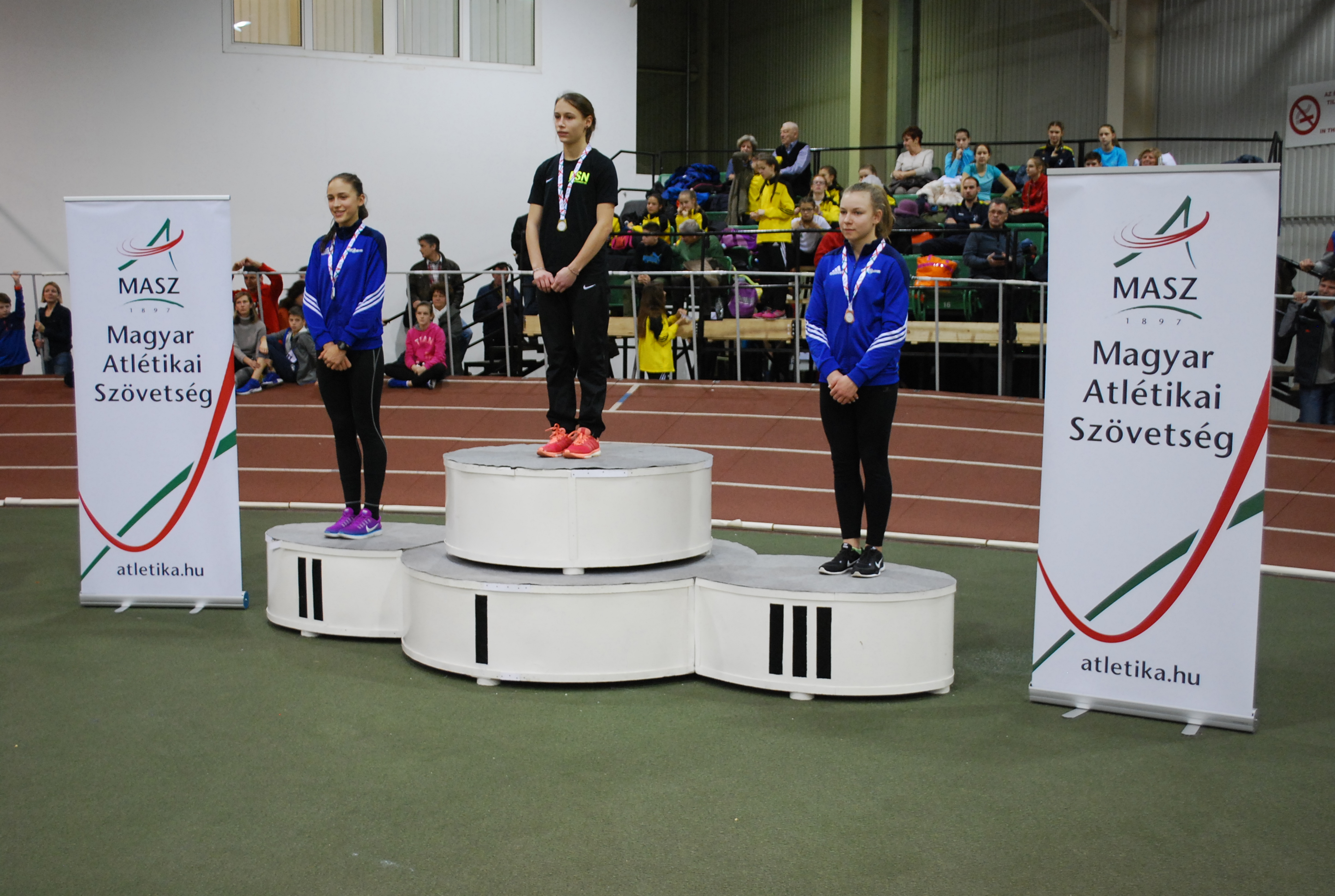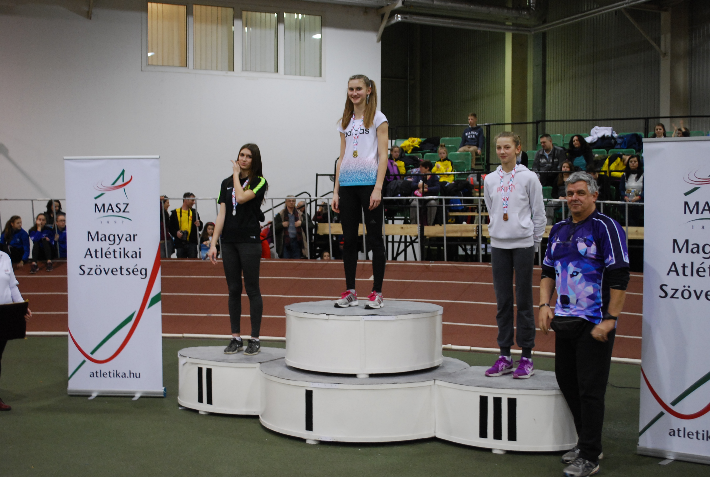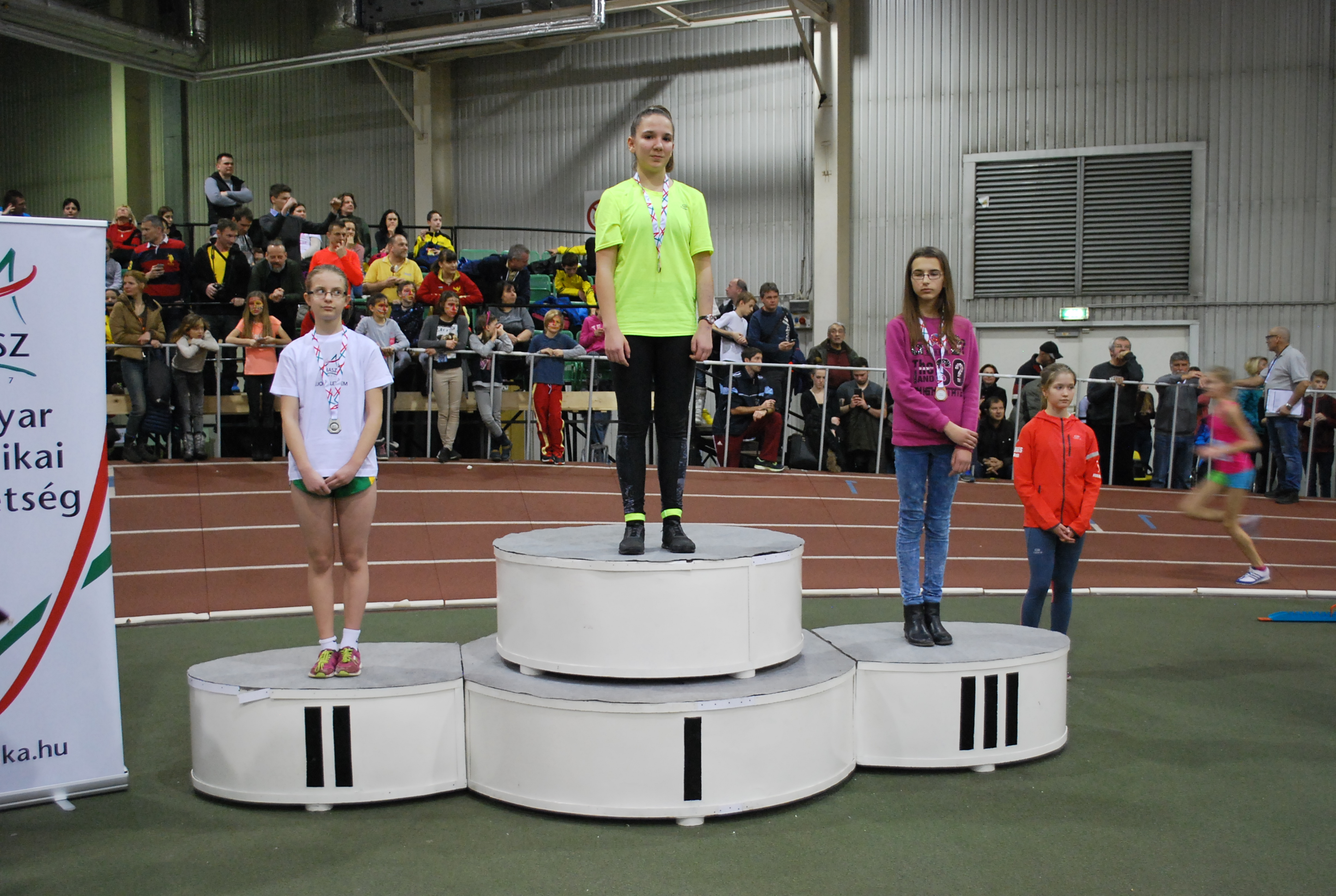 A két bajnoki címet Mészáros Babett újonc 3000 m-es gyaloglásban, és Skriván Bíbor serdülő 60 m-es síkfutásban hozhatta haza. Babett újoncként egyéni csúccsal (18:42.89) óriási küzdelemben győzött, Bíbor az egy évvel idősebb lányokat is maga mögé utasítva, új egyéni csúccsal, 7,94 mp-es remek idővel állhatott a dobogó legfelső fokára.